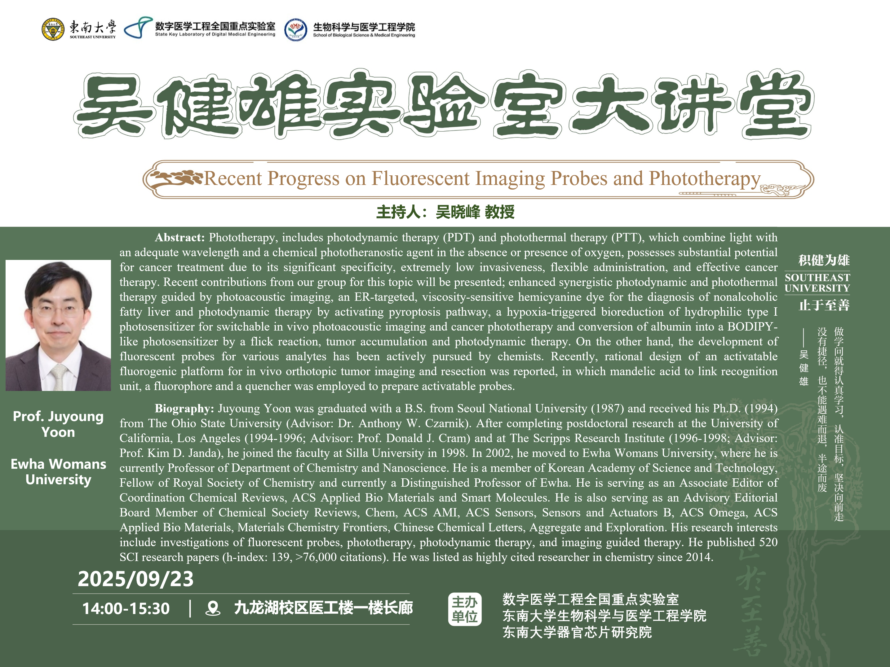 吴健雄先生是杰出女性物理学家、世界物理学界的传奇人物,被誉为“核子物理女皇”、“东方居里夫人”。作为吴健雄实验室的传承者,数字医学工程全国重点实验室、东南大学生物科学与医学工程学院联合举办“吴健雄实验室大讲堂”“吴健雄实验室青年学者讲堂”系列学术报告交流分享会。