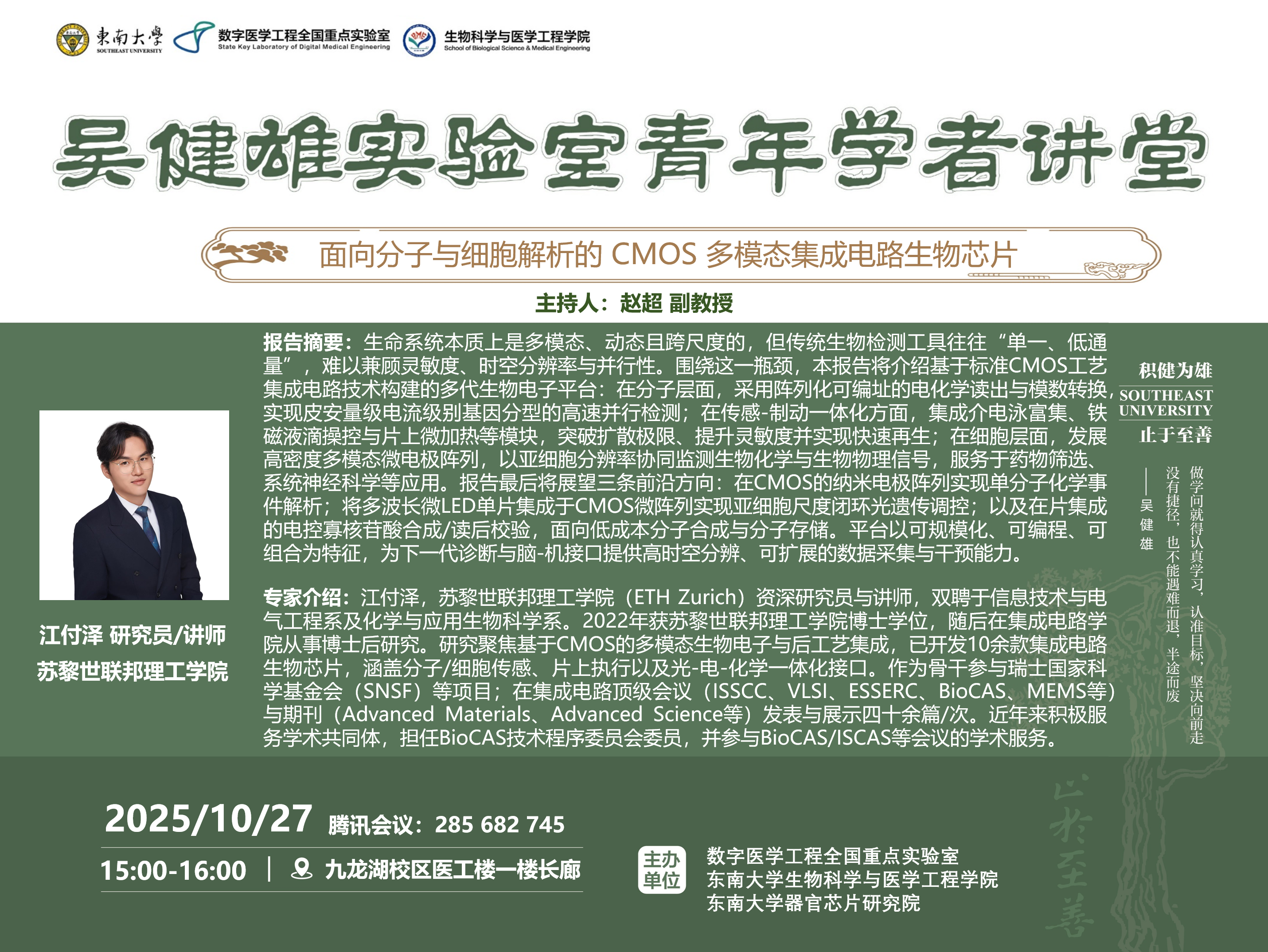 报告地点:东南大学九龙湖校区医工楼一楼长廊